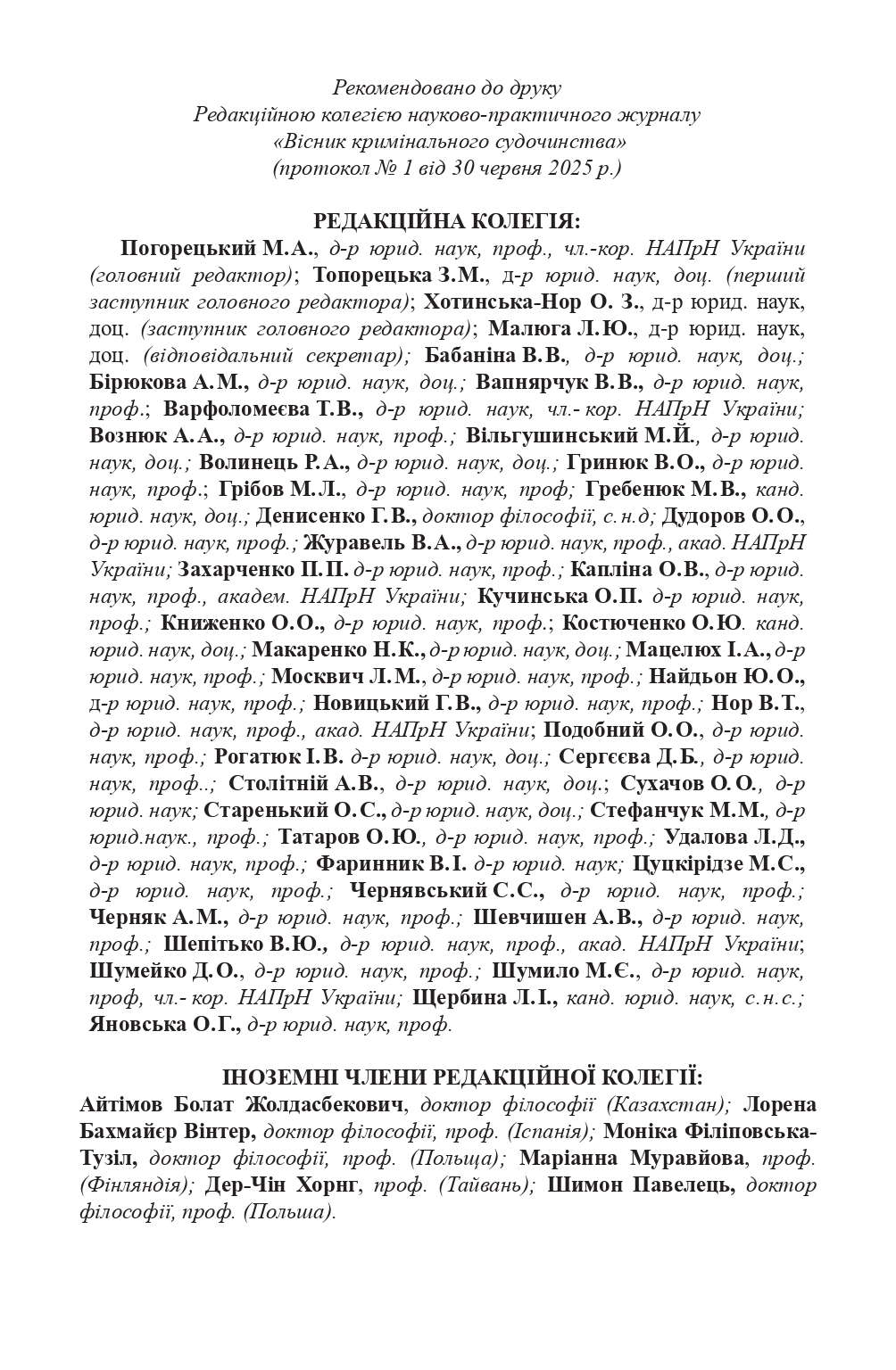 - № 1-2 2025 Актуальні проблеми кримінального судочинства