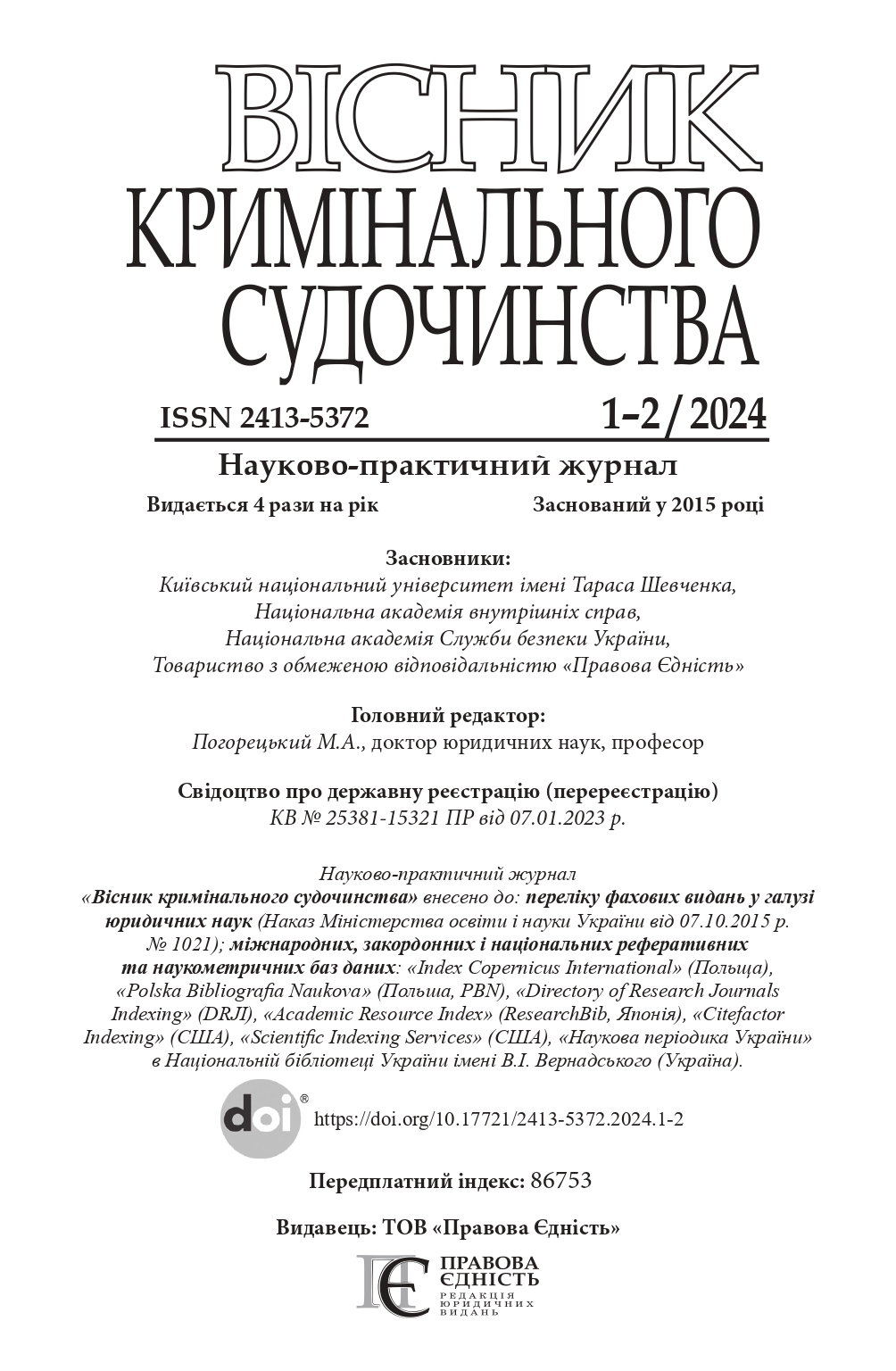 № 1-2 2024 Актуальні проблеми кримінального судочинства